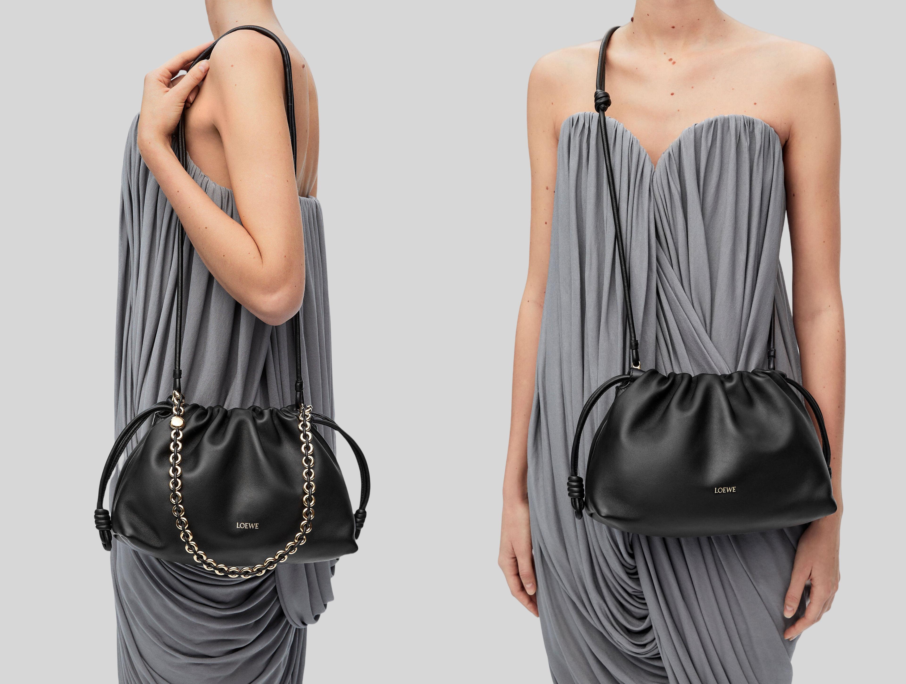 フラメンコラインの美学にインスパイアされた印象的なたわみのあるデザインのフラメンコパース。シグネチャーであるサイドノットやドーナツチェーンなどのディテールによって引き立てています。本製品は、メローナパラムスキンを採用しています