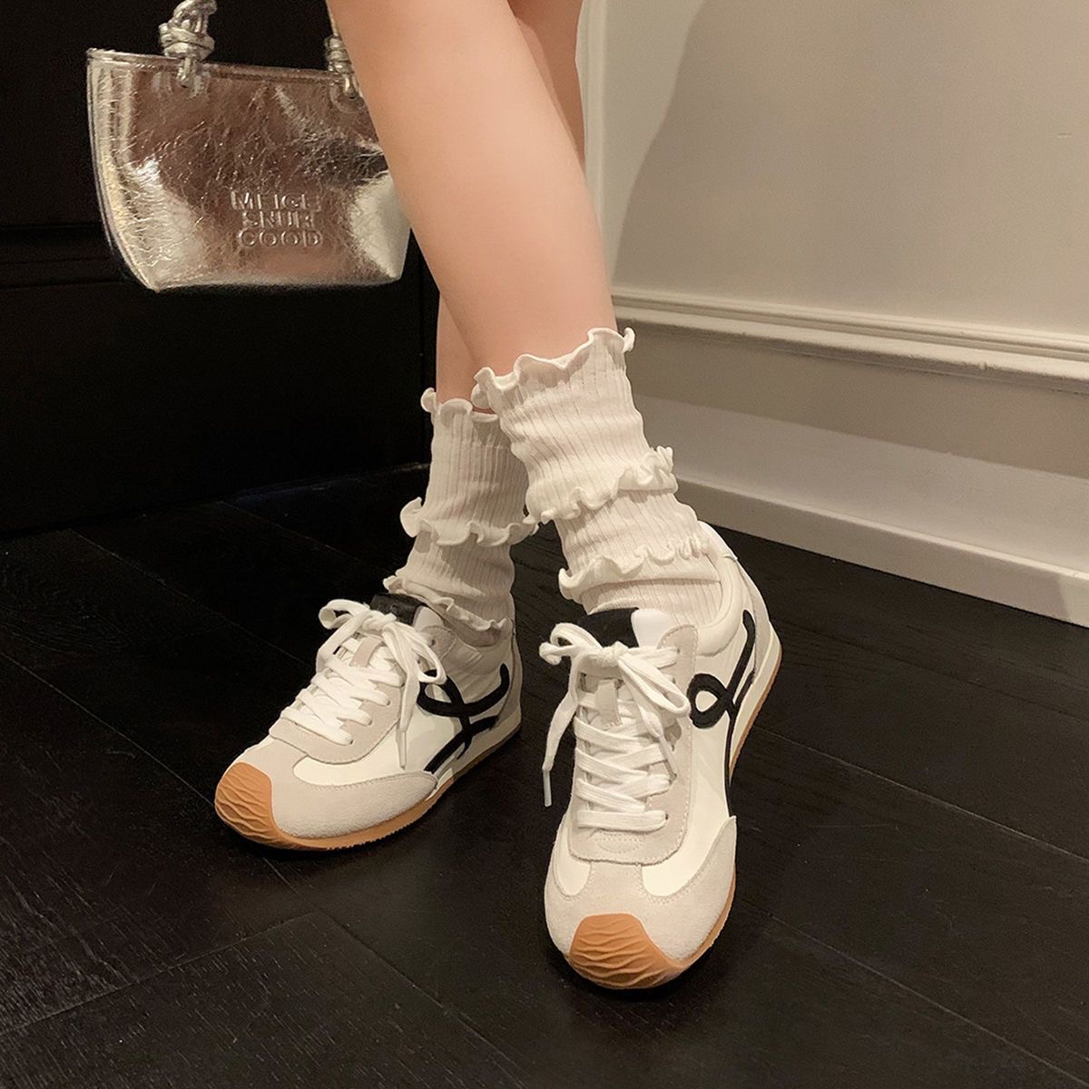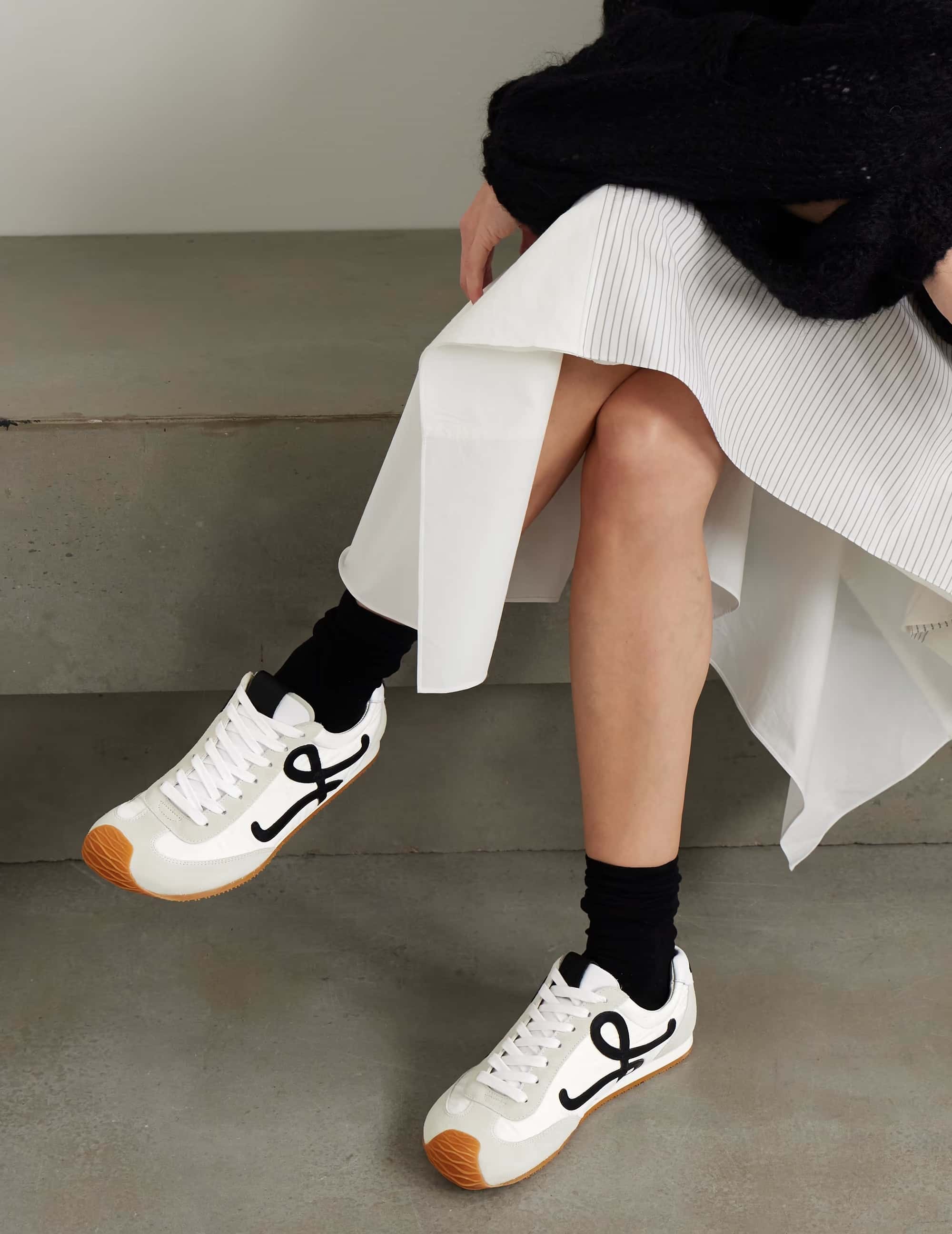 ナイロンとカーフスキンを採用したスニーカー。アシンメトリーなトゥシェイプ、ソックスのような内部構造、トゥキャップまで伸びる軽量のラバーアウトソールが特徴ですヒール 20mmボディと同系色のシューレースサイドにLモノグラム、タンにアナグラムのエンボス加工ヒールタブにLOEWEのインジェクテッドラバー詳細カラー : ブラック/ホワイト,ホワイト/ブラック素材 : ナイロン/カーフヒールの高さ : 2重さ : 0.8 kgモデルID : LLBR282X01製造国 : イタリア