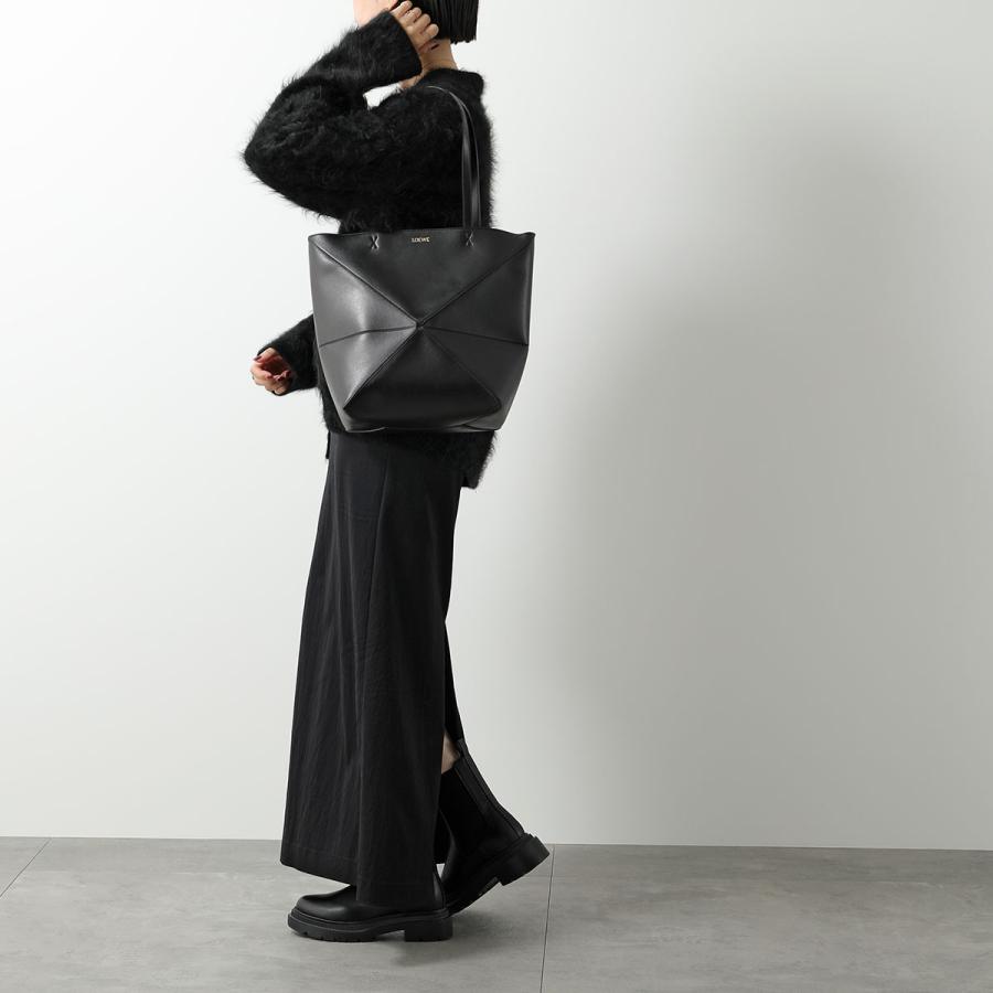 パズルトートはパズルバッグの幾何学的なラインを取り入れながら、グラフィックで構築的に再創造されたトートバッグです。レザーピースを組み合わせた革新的な構造によって完全にフラットに折りたたむことができます。本製品はシャイニーカーフスキンを採用したミディアムサイズです